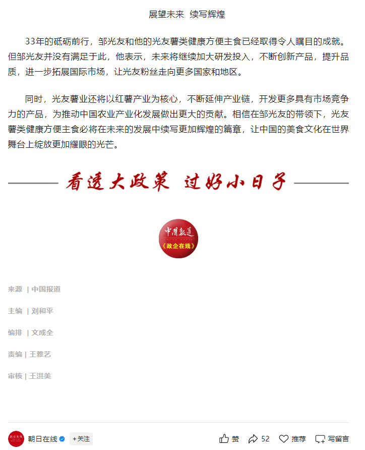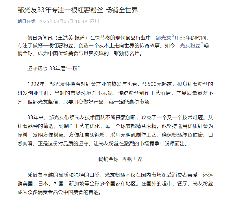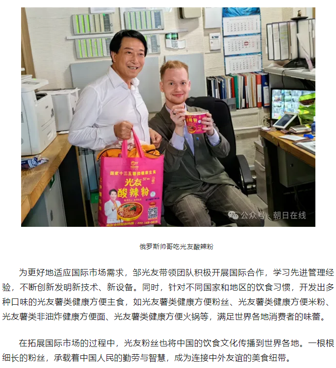 轉(zhuǎn)載朝日在線——鄒光友33年專注一根紅薯粉絲 暢銷(xiāo)全世界