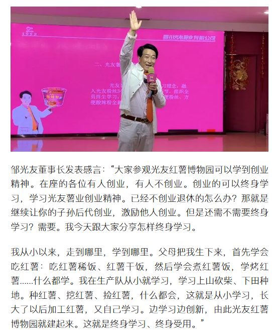 轉(zhuǎn)載搜狐網(wǎng)-光友紅薯博物園暖冬盛會(huì)啟幕 鄒光友直播分享終生學(xué)習(xí)