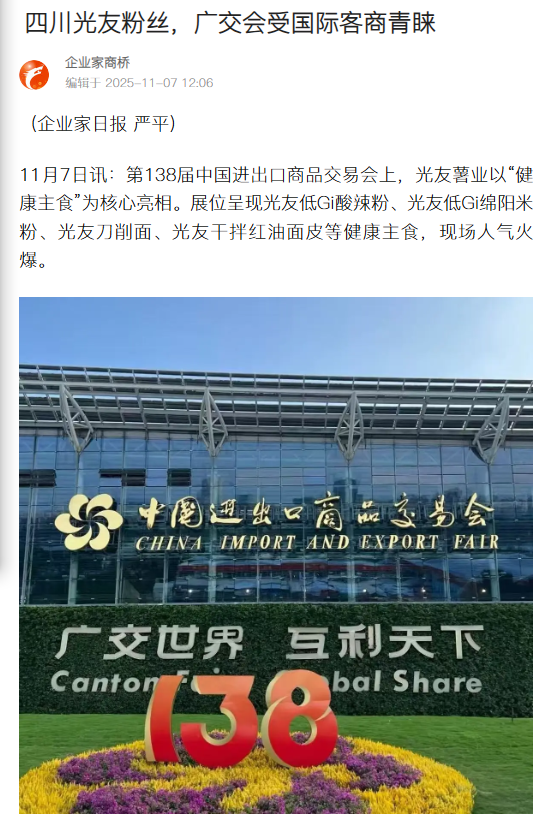 轉載搜狐網-四川光友粉絲,廣交會受國際客商青睞
